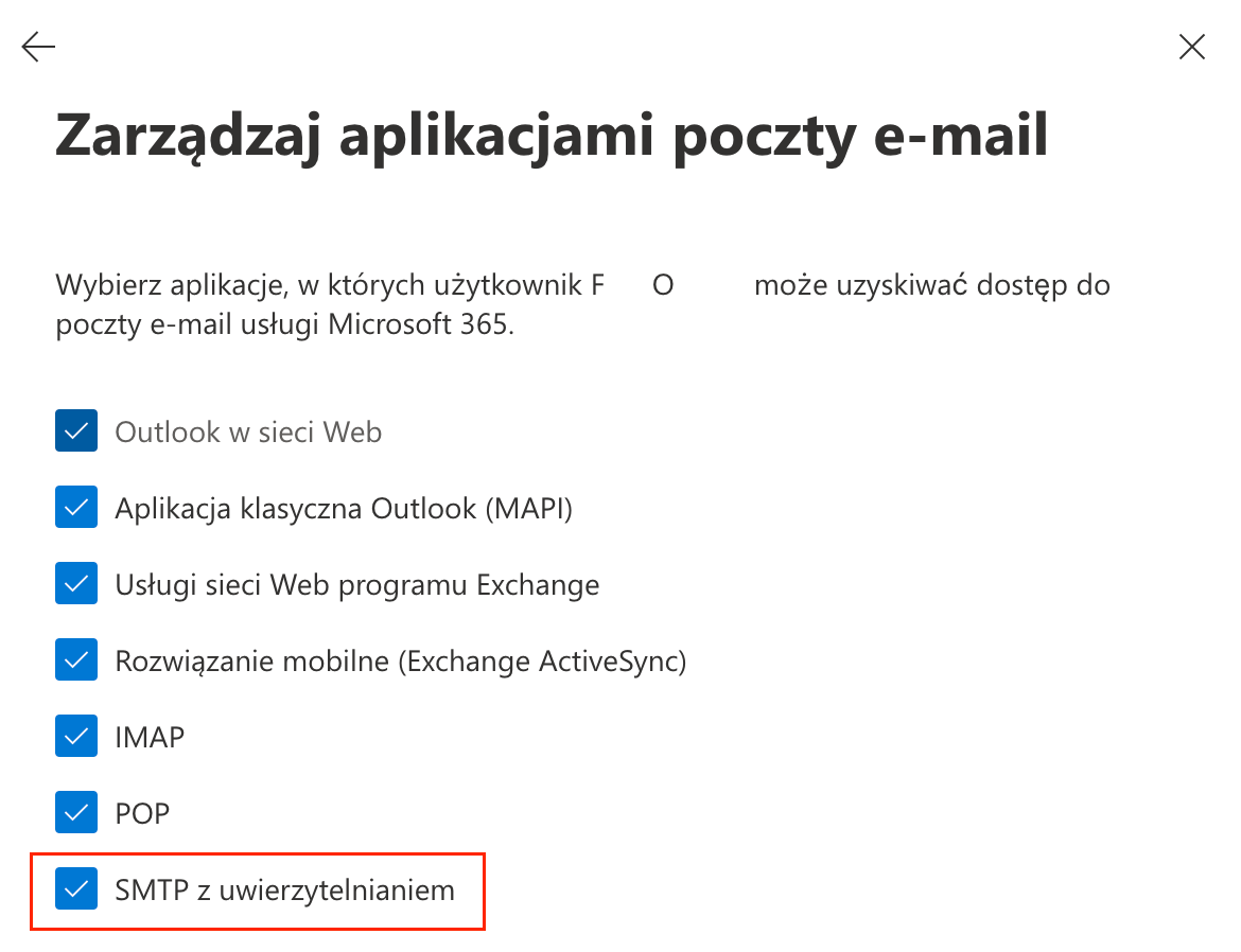 Aby wysyłka poczty była możliwa po protokole SMTP, należy skonfigurować uprawnienia w panelu microsoft.