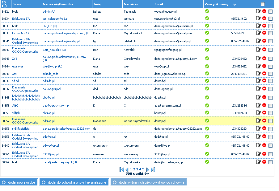 Jest to lista użytkowników firm, składająca się z kolumn: