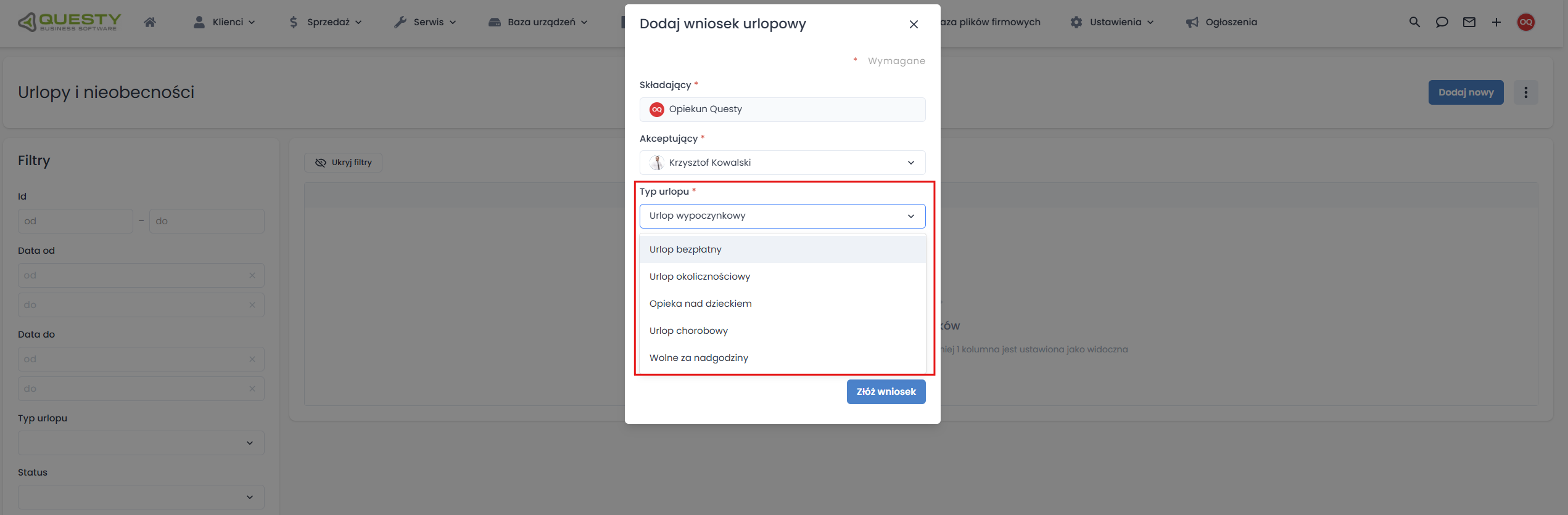 - dostęp do wniosków i dostępnych dni urlopowych wszystkich pracowników.