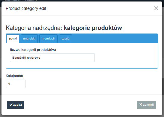 1. Dodawanie, edycja i usuwanie kategorii produktów.